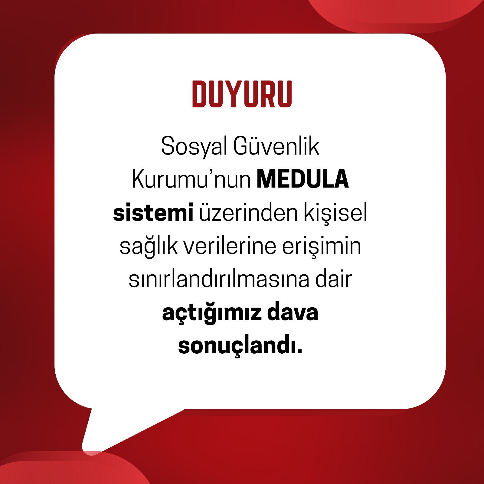 MEDULA sistemi, kişilerin ilaç raporları ve tanı bilgileri gibi özel nitelikli sağlık verilerini içermekte ve doktorlar, eczacılar ve bazı sağlık çalışanları tarafından görüntülenebilmektedir. Genelge yürürlüğe girmeden önce kişiler, Sosyal Güvenlik Kurumu’na başvurarak kendi verilerine erişimin sınırlandırılmasını talep edebiliyordu. Ancak 2021 yılında çıkarılan genelge ile bu hak ortadan kaldırıldı.